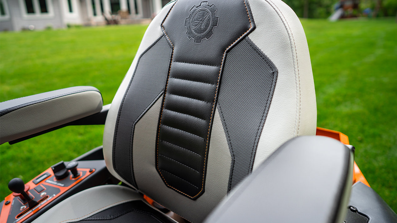 A 20” seat built for long mowing days that looks as great as it feels. It comes complete with arm rests for less fatigue. Hand grips were ergonomically designed down to the last dimple, giving you total control through every turn.