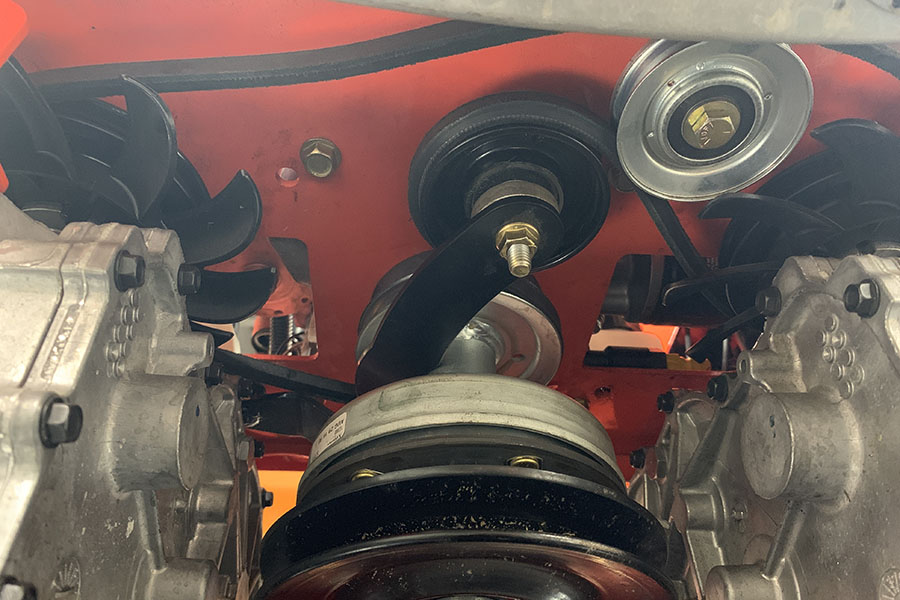 9. Ensure the PTO belt has tension and is aligned in all pulleys.