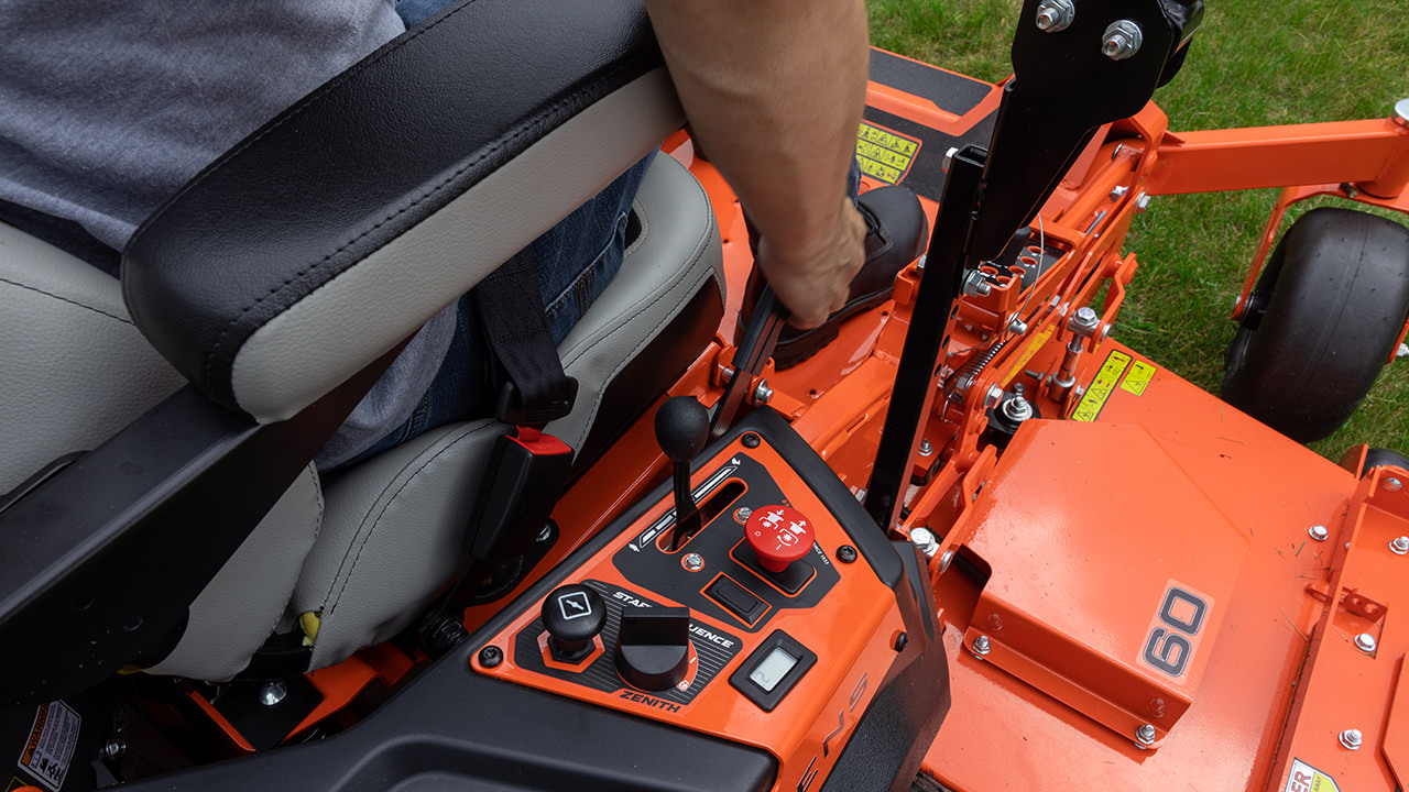 Acre after acre, hour after hour, it easily cuts through the thickest grass in its path. The ZENITH also stands out in the crowd thanks to its design. First, it turns heads, then it turns them orange with envy as it leaves grass perfectly cut.